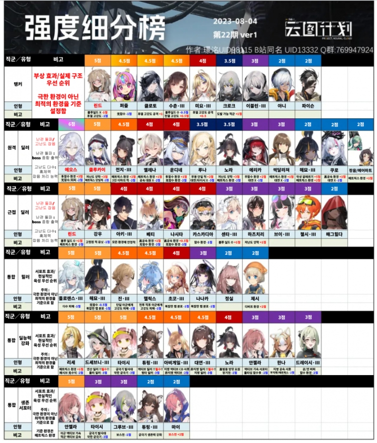 중섭 기준으로 티어표 입니다. 참고만 하시면 좋을것 같습니다.
