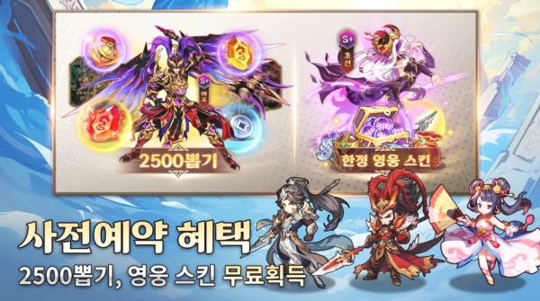 현재 사전등록시 2500뽑기 증정, 한정 영웅스킨 무료 획득이 가능합니다.