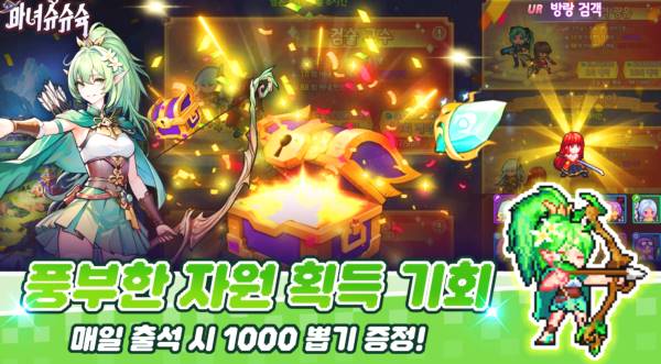 또한 다양한 미니게임모드로 슈팅, 채굴, 매칭, 블록퍼즐 등 다양한 자원을 획득할 수가 있으며 매일 출석시 1000뽑기 증정 기회까지 있으니 지금 바로 시작하시는 것도 좋겠죠