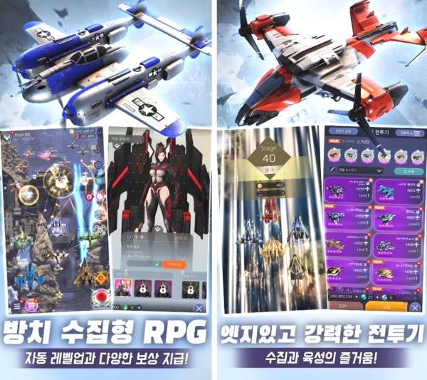 슈팅게임을 좋아하시는 분들이라면 잊을 수가 없는 게임 입니다. 적들의 탄막을 피해 전투기를 합성하고 여러 전투기를 수집하는 핵심적인 게임으로 스트라이커즈 IP를 기반으로 제작이 되었으며 특히 내가 좋아하는 전투기를 강화해서 편대를 조합하는 시스템이 특징인 게임 입니다. 또한 방치형이 결합이 되어 접속하지 않는 시간대는 자동으로 스테이지를 클리어 해주는 기능까지 있습니다.