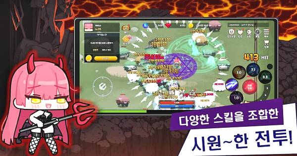 방치형 게임으로 주변으로 몬스터들이 몰려오는 전형적인 키우기류의 게임 입니다. 하지만 여기에 RPG요소를 더해서 키우는 맛까지 더한 게임 입니다. 무엇보다 수많은 적들이 몰려오는 스테이지를 클리어하는 재미까지 완벽해요 몬스터를 처치하고 아이템을 공격력을 높이고 스킬까지