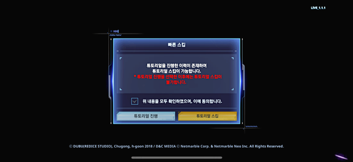 처음 튜토리얼만 진행 후에 게임 초기화후에는 튜토리얼 스킵 기능이 있기 때문에 이렇게 리세마라를 하면 1분 정도면 진행이 가능합니다. 튜토리얼 없이 바로 첫화면에서 마정석과 티켓만 수령후에 진행을 하시면 됩니다.