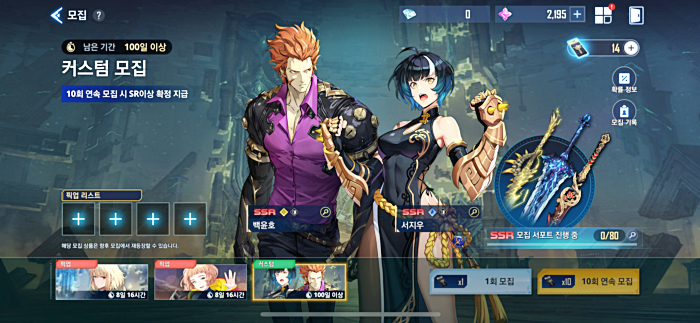 0티어 서지우, 엠마로랑, 차해인, 최종인 순으로 뽑아가시면 됩니다. 무기도 중요하긴 하지만 역시나 캐릭터를 뽑아가는게 가장 중요하며 가장 베스트는 2개의 캐릭터를 뽑아가는거지만 20회 뽑기로 진행을 해야하기 때문에 서지우를 0순위로 선택하셔서 1명만 나와도 이륙을 하시는게 편합니다.