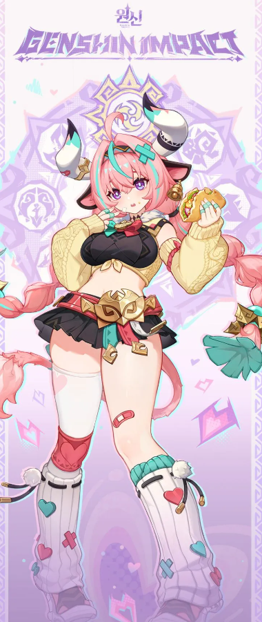 캐릭터 특징으로는 원신에서도 공식 먹보 캐릭터로 공식 대식가로 알려진 마비카보다도 더욱 많이 먹는다는 설정으로 혼자서 80인분 세트를 주문할 정도로 공식 먹보 캐릭터로 알려져 있음