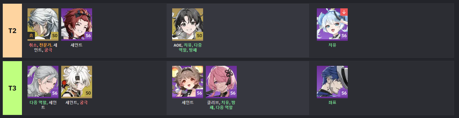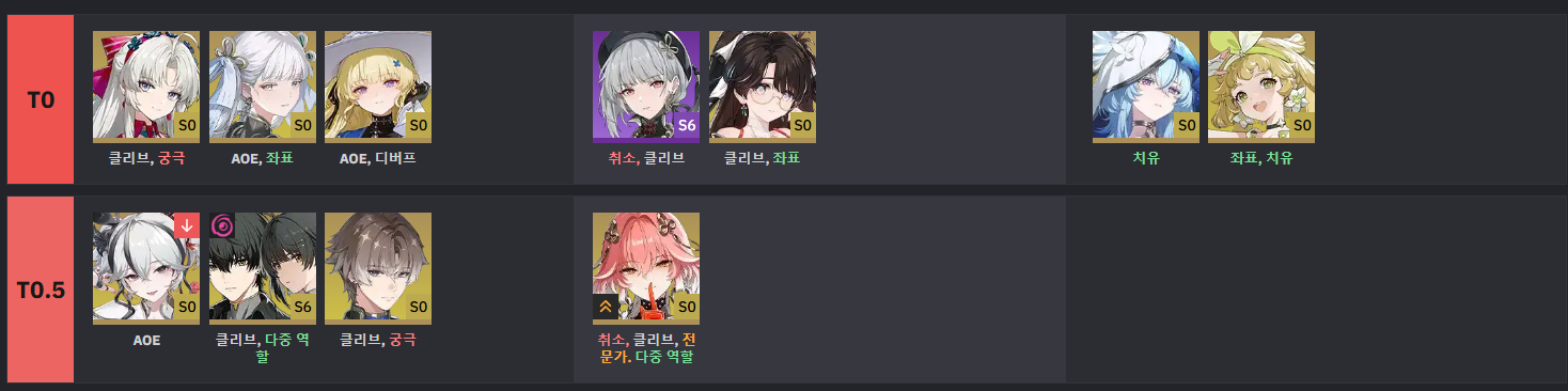 사실 명조는 캐릭터마다 성능차이가 크게 심하지 않기 때문에 굳이 티어표까지는 볼 필요가 없지만 그래도 가져가야 하는 캐릭터가 있긴 있습니다