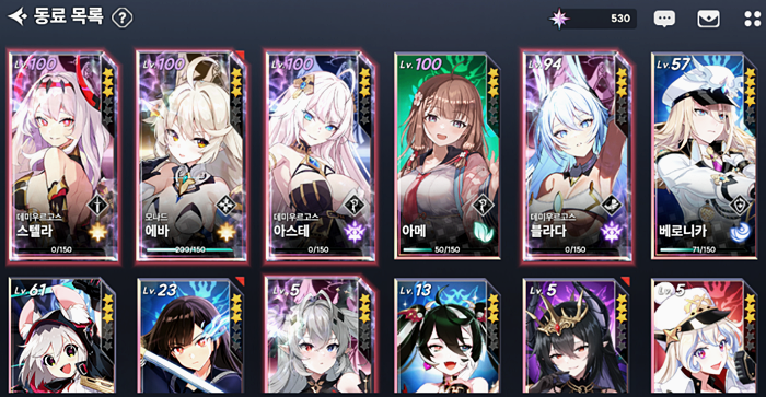 노엘: 어둠 속성 딜러로, 단일 보스전에 특화되어 있으며 지속적인 디버프가 우수합니다