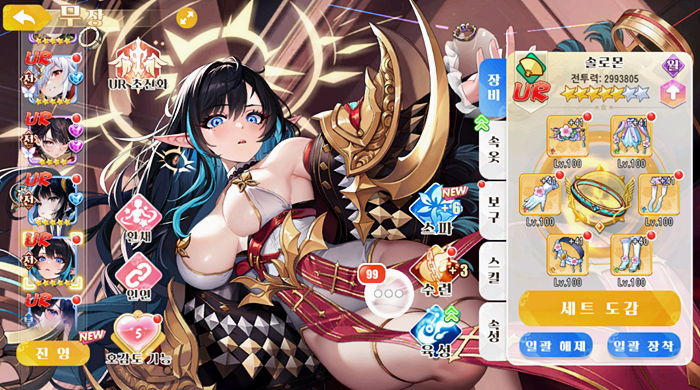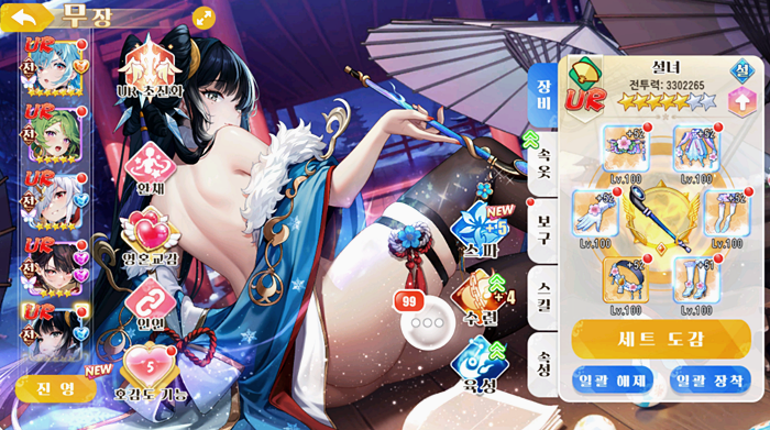 UR캐릭터 기준 입니다. 요즘에 대부분 캐릭터가 UR로 출시가 되고 있어서 SSR 보다는 주로 UR 위주로 사용합니다.