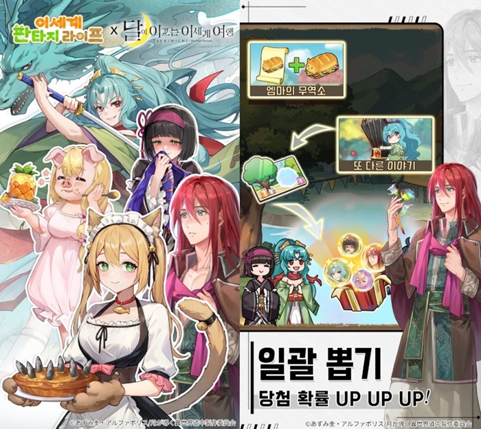 전투와 모험뿐 아니라 마을 운영, 낚시, 농사 등 힐링 요소가 잘 조화를 이룹니다. 미니게임과 이벤트 달이 이끄는 이세계 여행 콜라보가 진행중이며 리세마라 없이도 진행이 가능해 진입 장벽이 낮습니다.