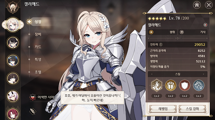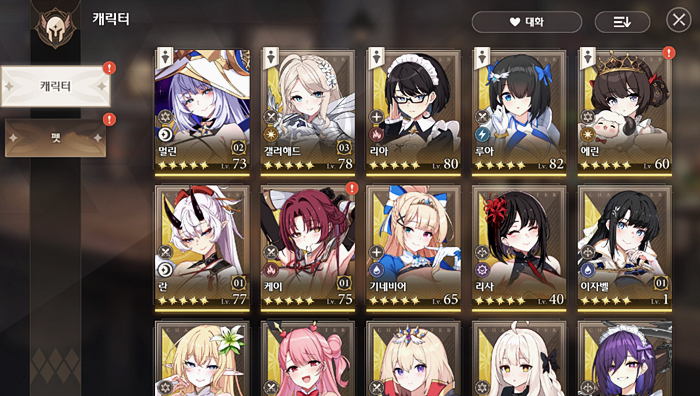 횡스크롤 방식의 자동 전투와 5인 파티 시스템이 핵심입니다. 플레이어는 캐릭터를 전/중/후열에 배치하고, 각 캐릭터의 고유 스킬 타이밍을 조절하며 전투를 진행합니다.