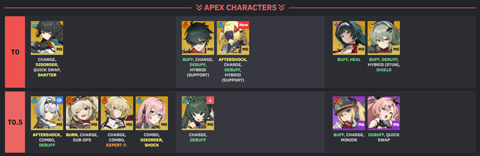 1.6 신캐릭터 트리거는 0티어에 배치가 되었네요. 그리고 나머지 캐릭터들은 대부분의 자리는 그대로네요