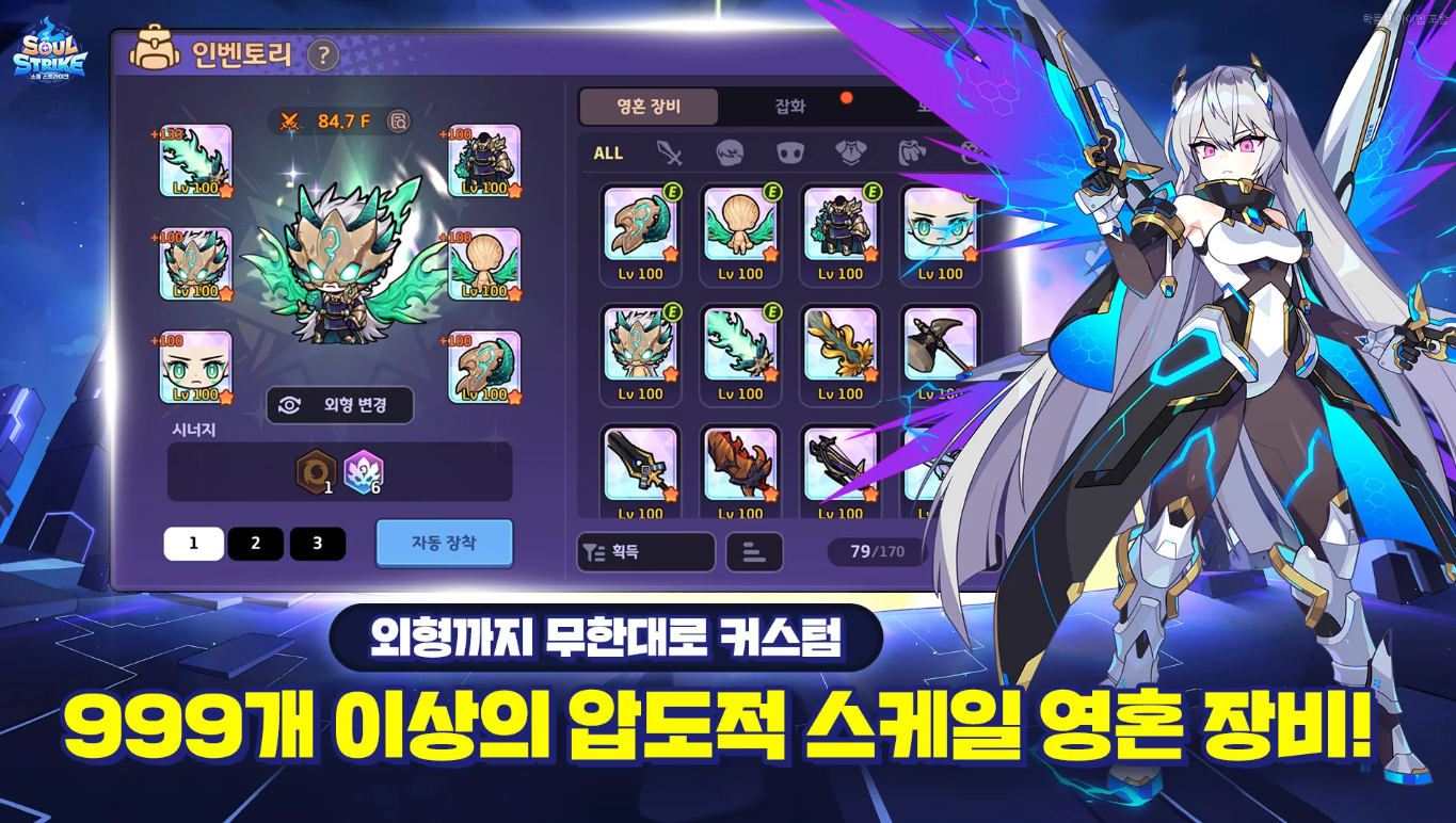 소울스트라이크는 방치형 게임의 쉬운 접근성과 핵앤슬래시의 화려한 액션을 결합해 초보자와 장르 팬 모두에게 어필하는 게임입니다. 고퀄리티 그래픽과 커스터마이징의 자유도가 강점이며 최근에는 강철의 연금술사 콜라보로 인해서 더욱 인기를 끌고 있습니다.