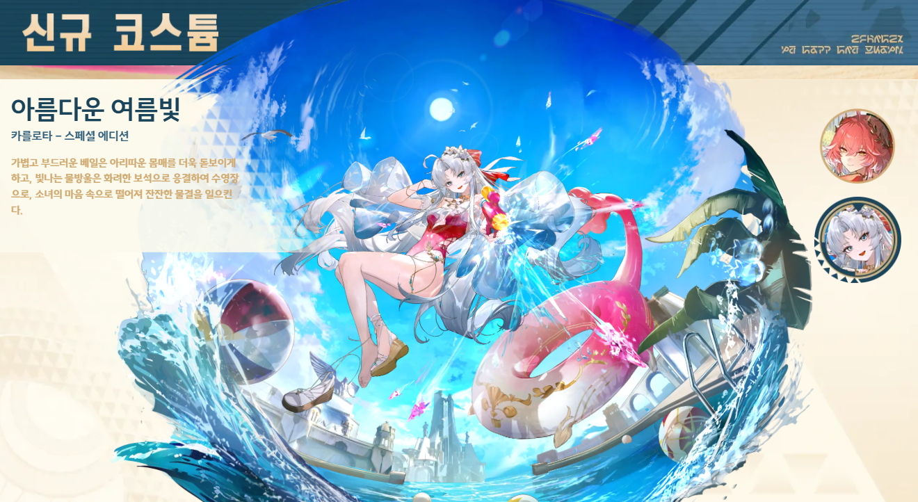 2.4 버전 메인 스토리는 “의인”과 관련된 이야기로, 프리뷰 트레일러에서 “이야기의 끝”을 암시하는 전개 여름 테마 코스튬 추가 예고. 코스튬 구매 시 300 달빛 할인 쿠폰 제공 조수 촬영 이벤트 및 사진 대회 등 다양한 이벤트 예정