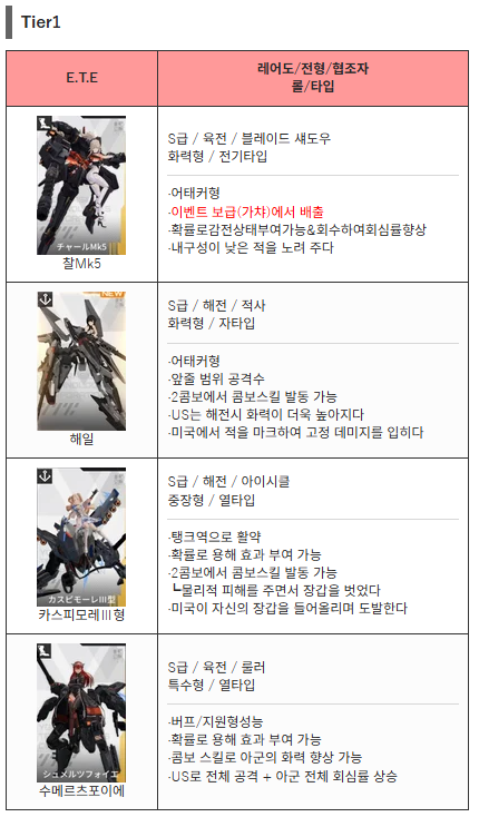 에타크로니클 티어표 메카닉 게임 고퀄리티 모델링