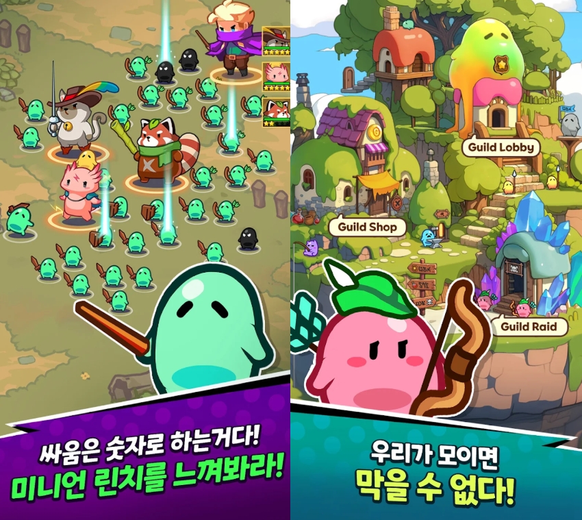 미니언: 기본 전투 유닛으로, 미니 슬라임 등 초소형 캐릭터 포함. 총 62종(노멀, 레어, 에픽, 유니크, 레전드 등급).