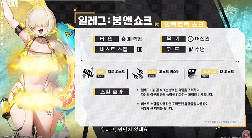 프림(Prim), 얀(Yan), 페퍼(Pepper): 방송에서 신규 니케로 소개되었으며, 여름 테마에 맞춘 한정 캐릭터로 추정됩니다. 자세한 성능 및 스킬 정보는 방송에서 구체적으로 공개되지 않았으나, 이후 게임 내에서 확인 가능할 것으로 보입니다.
