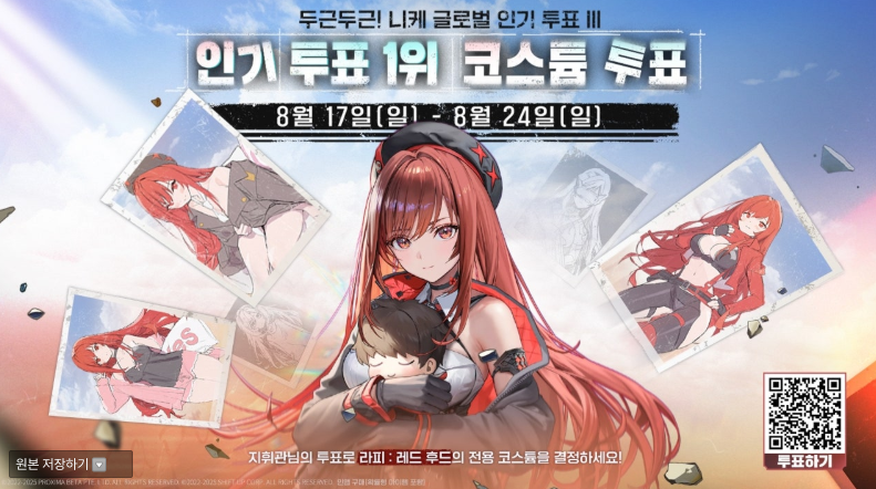 니케에서 진행 중인 라피: 레드 후드 코스튬 투표는 2025년 8월 17일부터 8월 24일 23:59까지 진행됩니다. 이 이벤트는 니케 글로벌 인기 투표 III에서 1위를 차지한 라피: 레드 후드의 스페셜 코스튬을 결정하기 위한 것으로, 가장 많은 표를 받은 코스튬이 모든 지휘관에게 무료로 지급됩니다.