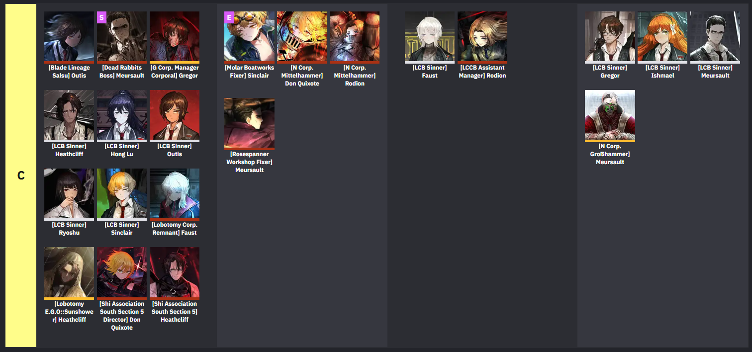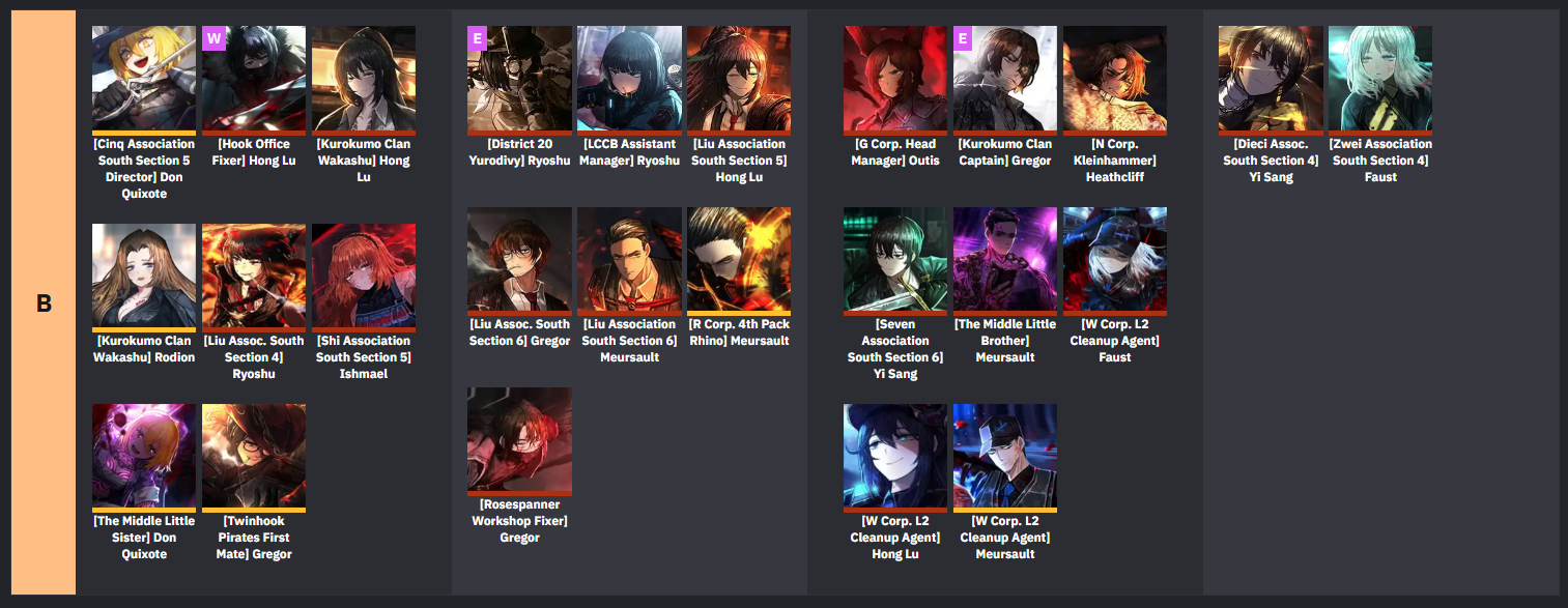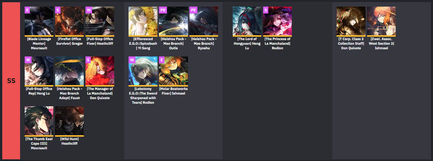 출처 https://www.prydwen.gg/limbus-company/tier-list/