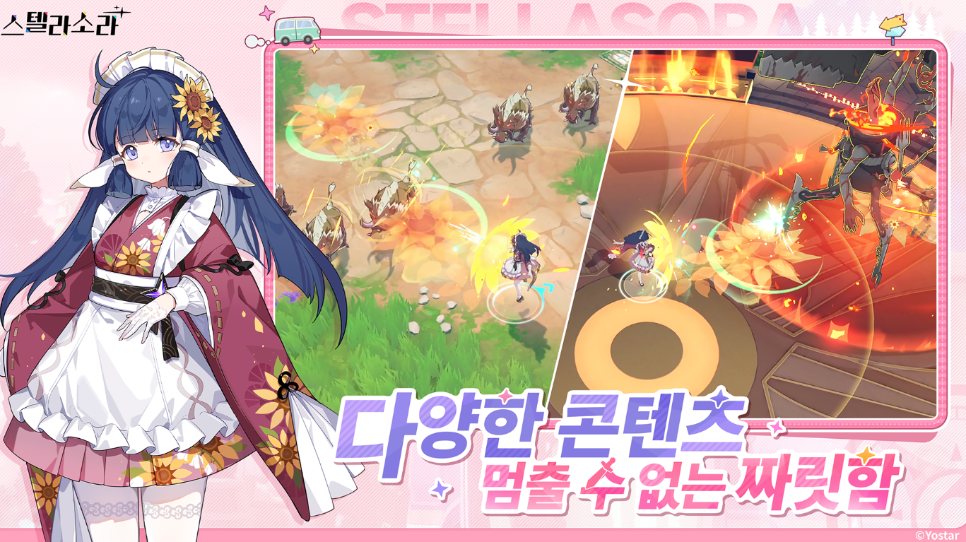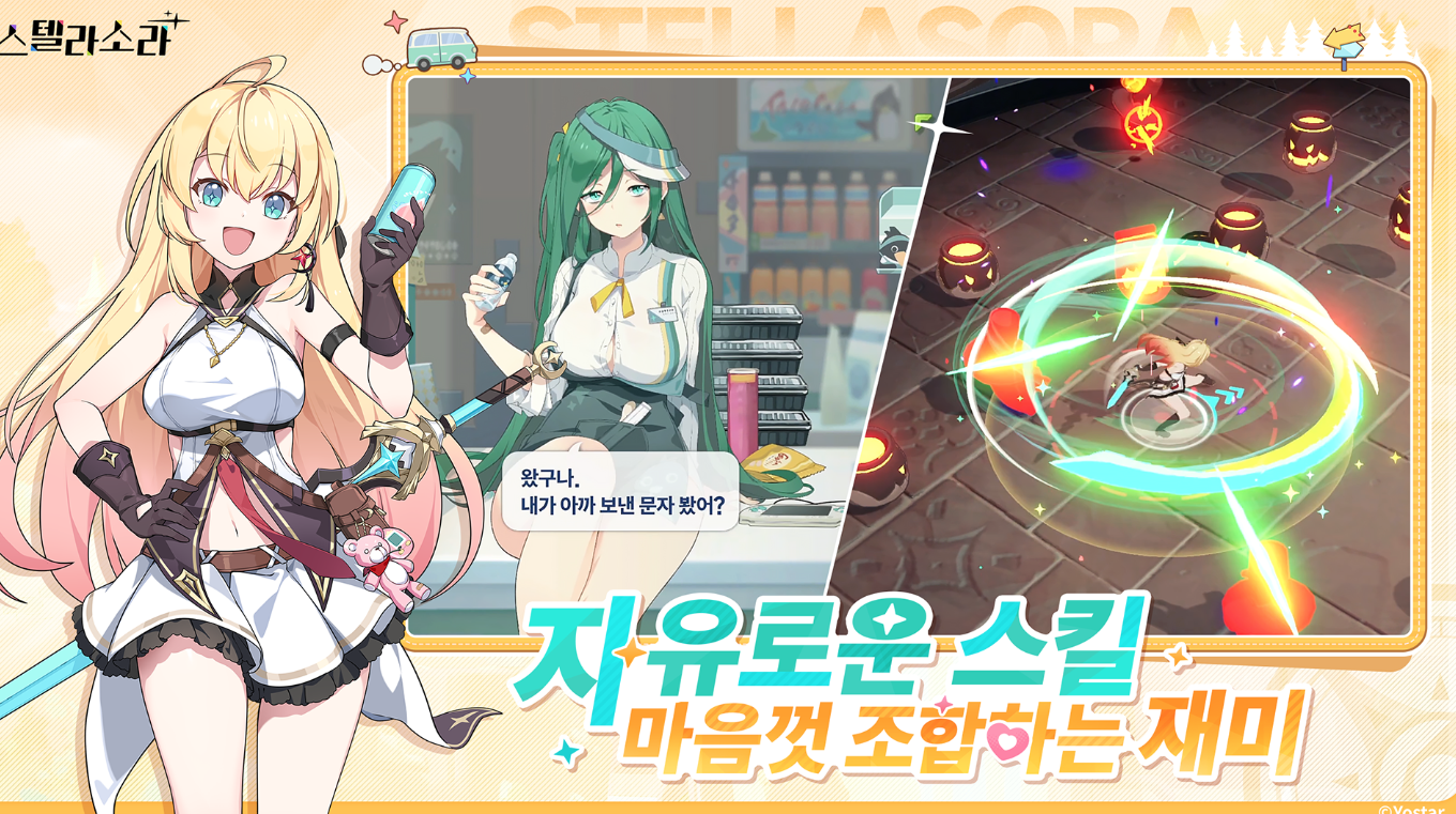 스텔라 소라는 요스타에서 자체 개발·서비스하는 애니메이션풍 판타지 액션 어드벤처 RPG로, 2025년 10월 20일 정식 출시됐습니다. 마왕이 된 플레이어가 귀여운 소녀 여행가들과 함께 별의 탑을 오르며 모험하는 이야기예요. 뱀서류 스타일의 로그라이크 액션 + 덱빌딩 요소가 핵심으로, 자동 전투에 스킬·회피를 더한 가벼운 플레이가 특징입니다