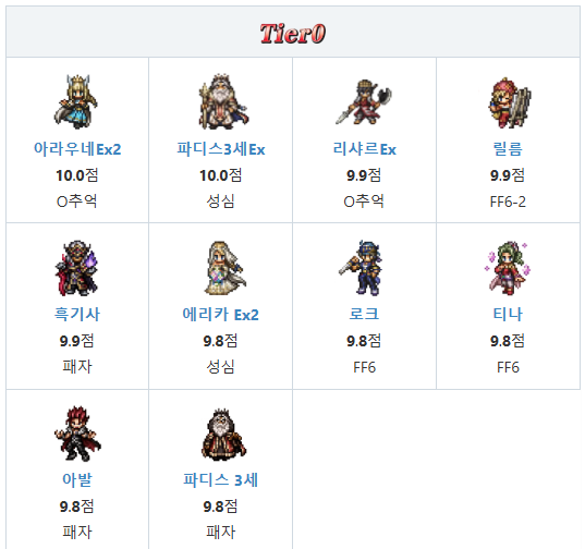 콜라보 캐릭터 (파이널 판타지 VI 등): 이벤트 한정, 강력한 스킬셋(예: 티나, 록).