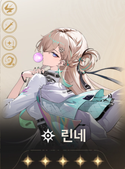 린네는 버전 3.0(2025년 12월 25일 출시)에서 등장한 5성 회절 속성 권총 공명자입니다. 스타토치 아카데미의 예과 학생으로, 활기차고 개성 넘치는 갸루 콘셉트의 여학생 캐릭터예요. 그래피티와 인라인 스케이트를 모티브로 한 화려한 액션과 비주얼이 특징입니다.