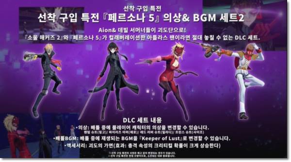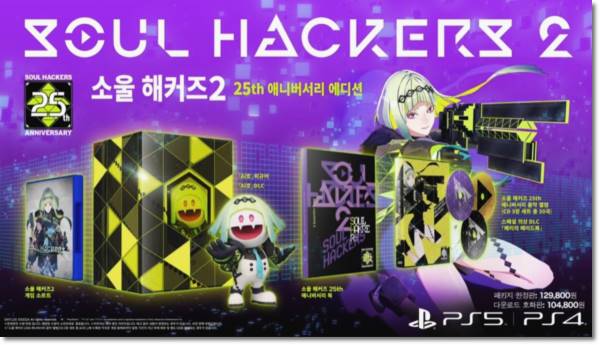 초회한청판은 25주년 애니버서리 에디션으로 25주년에 걸맞는 내용으로 구성이 되었다고 합니다. 소울 해커즈 25주년 애니버서리 북, AI호 피규어, 음악앨범 등 선착 구입 특전은 페르소나5의 콜라보레이션한 DLC 세트까지 받을 수가 있습니다.