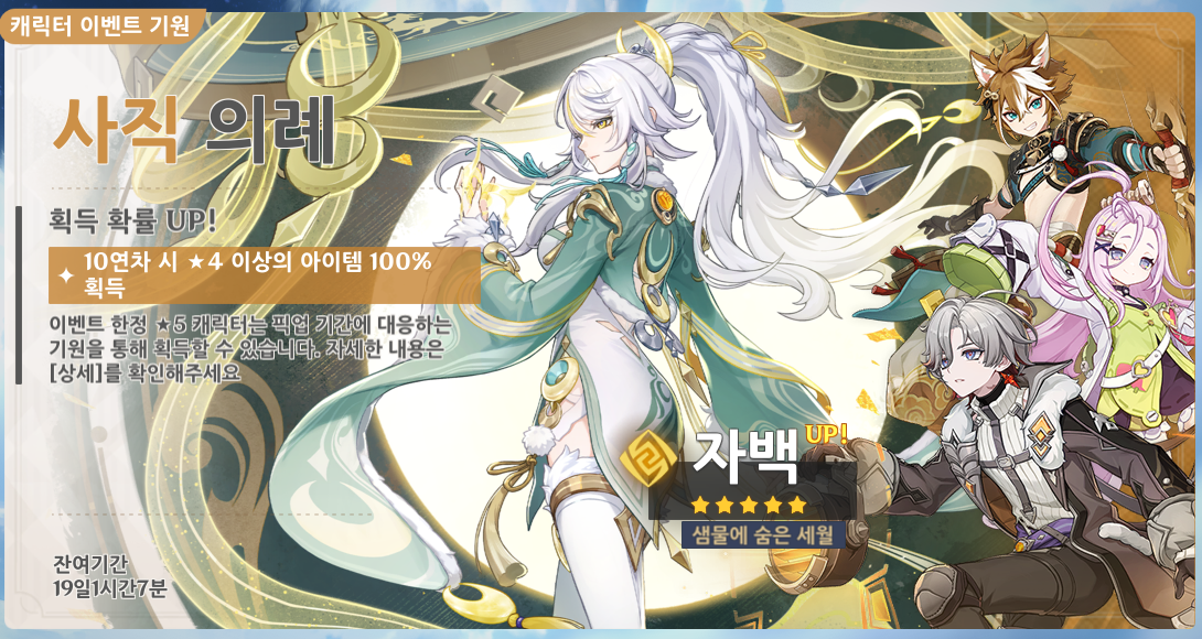 자백은 최근 네 번째 달 버전에서 추가된 5성 바위 원소 한손검 캐릭터입니다. 리월의 전설적인 백마 선인을 모티브로 한 온필드 메인 딜러로, 신규 반응 달 결정에 특화된 강력한 성능을 가지고 있어요. 노드 크라이 메타에서 최상위권 딜러로 평가받고 있습니다.