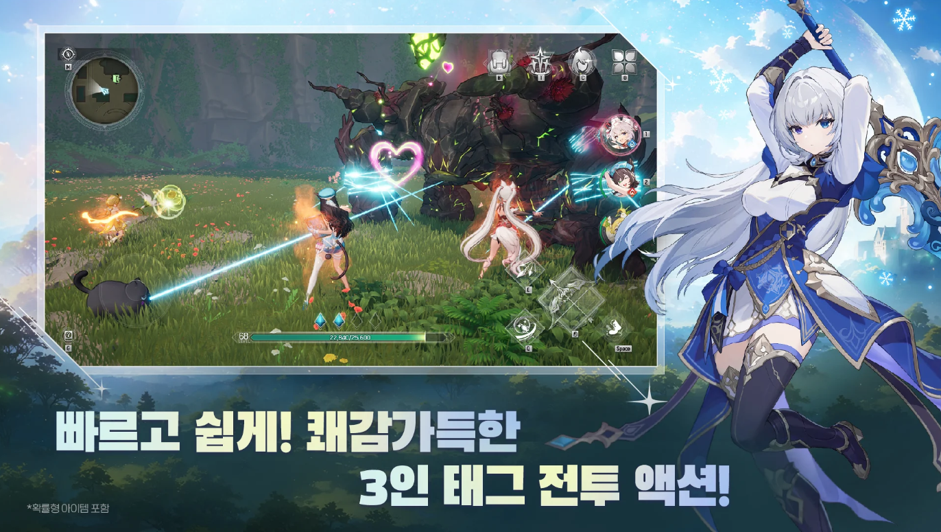 3인 태그 액션 전투  3명 파티 실시간 교체 + 태그 스킬 연계