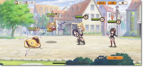 인게임은 일러스트와 메인화면과 다르게 귀여운 SD 캐릭터로 자동사냥이 가능하고 사실 인게임은 조금 지루할 수 있을것 같네요 하지만, 가챠게임 특성상 역시나 일러스트나 한편의 애니메이션을 보는듯한 메인스토리도 장점이 있는 게임입니다.