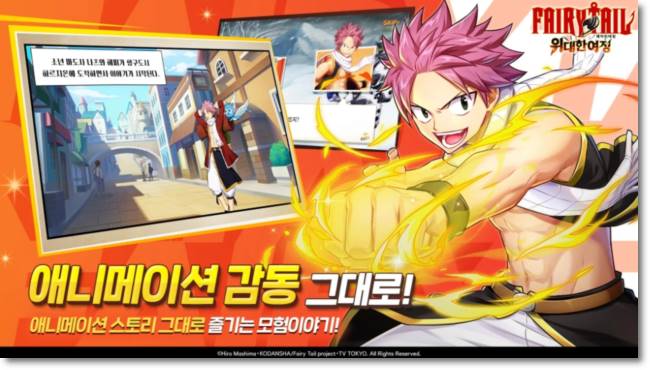 일단 캐릭터 일러스트는 합격점 입니다. 페어리테일 애니메이션을 봤기 때문에 개성이 있는 캐릭터들이 얼마나 구현이 되어있을지가 가장 궁금한 점인데요